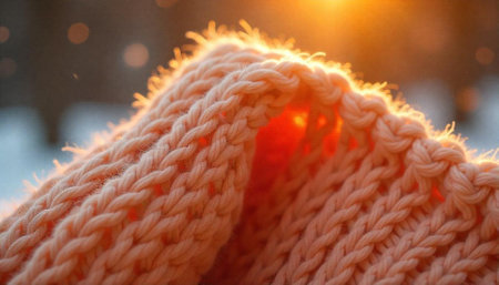 Cozy knitted texture bathed in warm sunlight glow