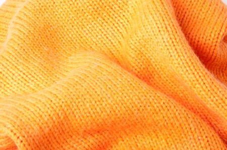 Orange knitted fabric scarf closeup