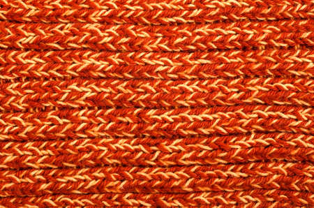 Cozy handmade knit texture with contrasting orange and cream colored yarn braids