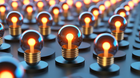 A grid of glowing light bulbs, illuminating the concept of ideas and inspiration.