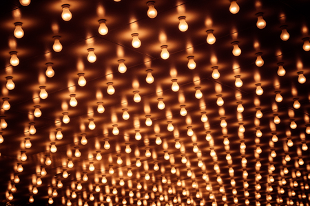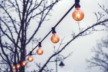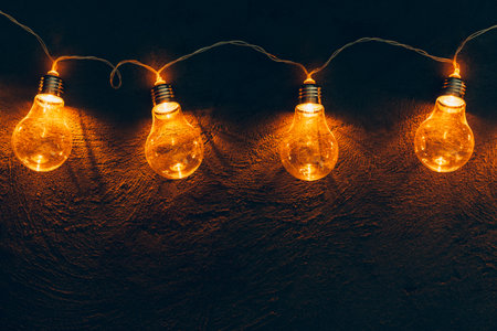 Background - electric garland with incandescent bulbs, yellow warm light, retro style