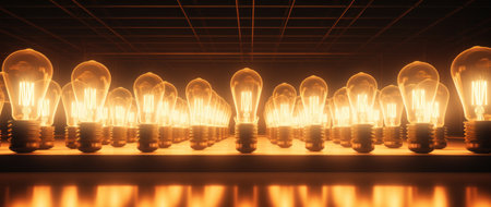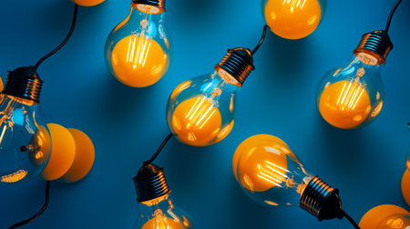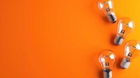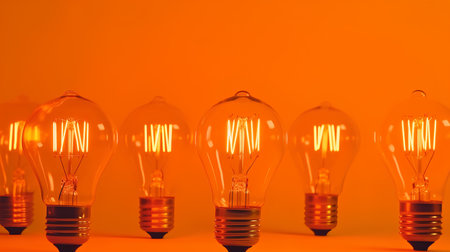 This image showcases bright light bulbs arranged on a vibrant orange background, symbolizing creativity, energy, and modern design aesthetics. Perfect for various creative projects.