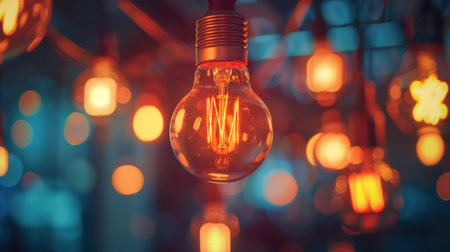 A close-up of a glowing light bulb with a bokeh effect background, creating a warm and cozy ambiance.