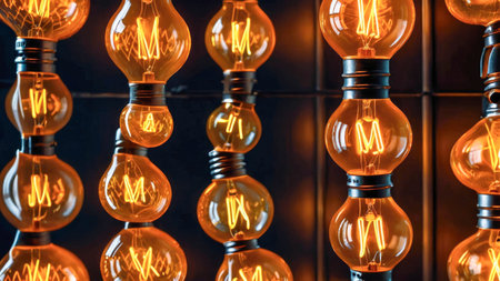 Macro shot of LED light bulbs, emphasizing the technology and energy-efficient design, with a focus on the intricate filaments.