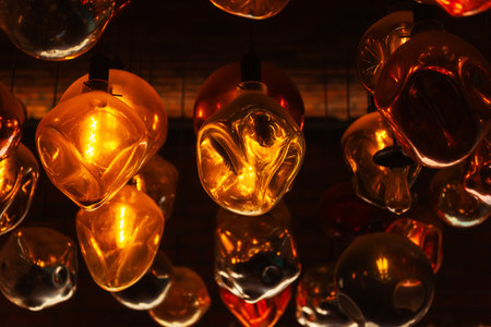 This captivating image features a series of vintage light bulbs hanging against a vibrant orange background, creating a warm and inviting atmosphere perfect for interior design inspiration.