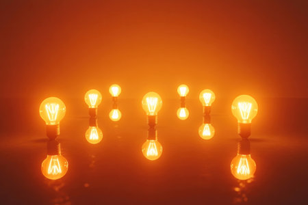A stunning arrangement of glowing light bulbs set against a vibrant orange background. This image captures warmth and creativity, ideal for design projects.