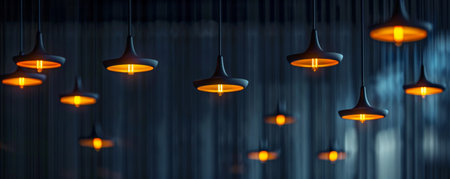 Sleek modern pendants cast a cozy golden illumination, creating an inviting atmosphere perfect for intimate gatherings or stylish cafes.