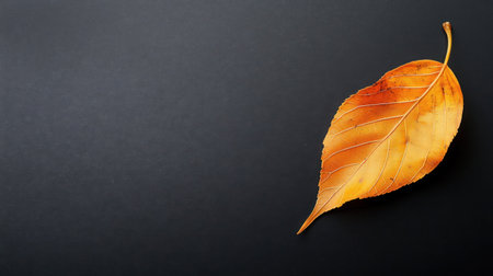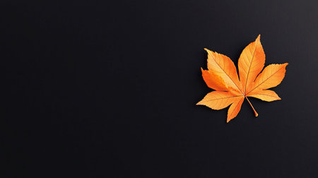 A single vibrant orange autumn leaf rests on a dark background, highlighting the beauty of fall. Ideal for nature-themed projects, this image captures seasonal change.
