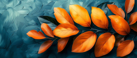 AI Generated. Dark Teal and Orange Leaves in Abstract Nature Art