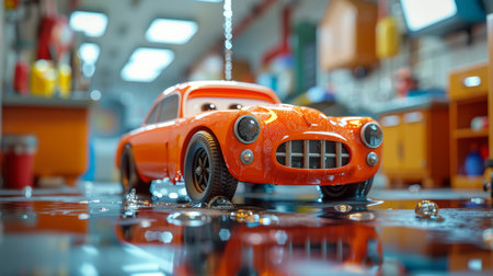 a hot wheels car captured in an ultra-realistic and insanely detailed photograph. the shot was taken on a 25mm lens with a depth of field and tilt blur effect. the lighting includes half rear lighting, backlight, and dramatic lighting, creating a dynamic and elegant pose. the image showcases intricate details and volumetric effects, resulting in a super-detailed and ambient composition. ai generated