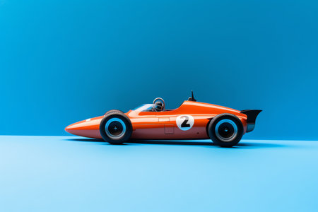 3d illustration of a colorful racing toy car on the blue isolated background.