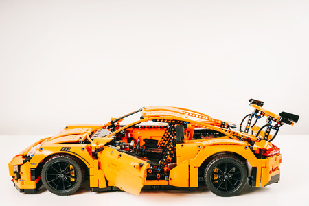 BUCHAREST, ROMANIA - APRIL 02, 2019: Porsche 911 GT3 RS Lego Model