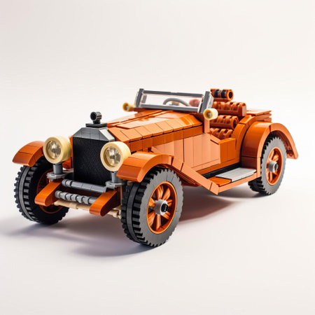 the lego car, meticulously crafted with vibrant colors and intricate details, sits proudly on a pristine white background, showcasing its sleek design and sturdy build, perfect for any toy enthusiast or collector looking to add a touch of nostalgia to their shelf. ai generated
