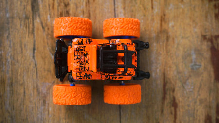monster car toy with distinctive big wheels. This car can drive on broken terrain roads