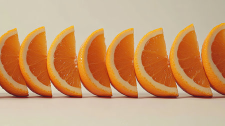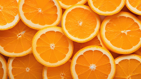 Bright fresh orange wedges arranged neatly to create a vibrant citrus background for food and advertising design.