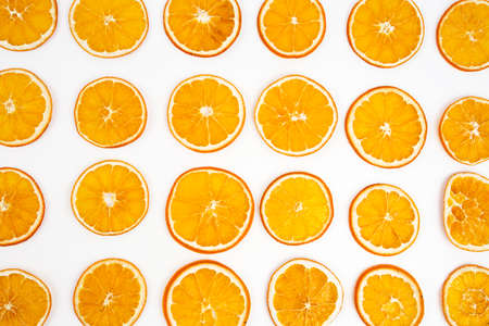 Fresh slised oranges on white background. Top view.