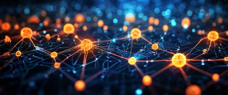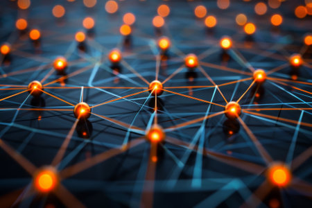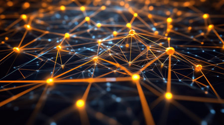 Abstract glowing network nodes, digital connectivity concept