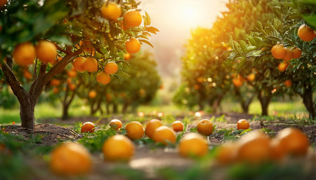 Sunlit Orange Grove: A Vibrant Orchard of Citrus Fruits