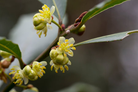 Blossom of Laurus nobilis plant, Laurus azorica, aromatic and medicinal plant