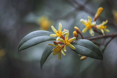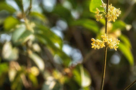 Close up of yellow osmanthus fragilis flower in bloom