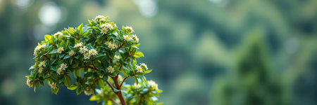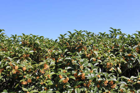 Fragrant olive flowers blooming in abundance in an autumn garden.