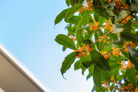 Osmanthus fragrans blooming in a residential area