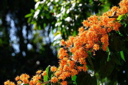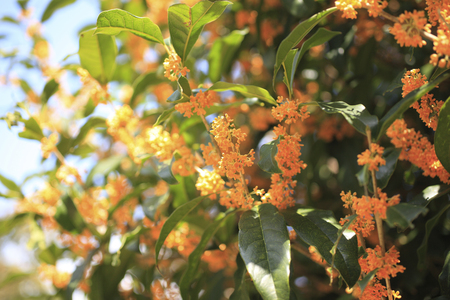 Orange blossoms of Osmanthus fragrans in the sunlight