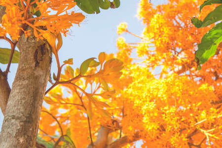 Orange flowers (Ashoka tree) blooming in ornamental garden