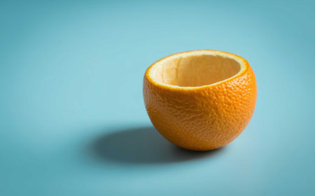 Hollowed Orange Peel on Light Blue Background