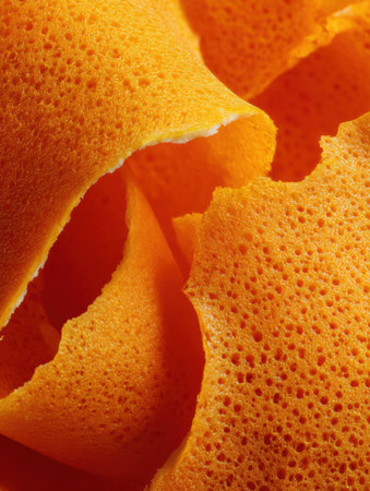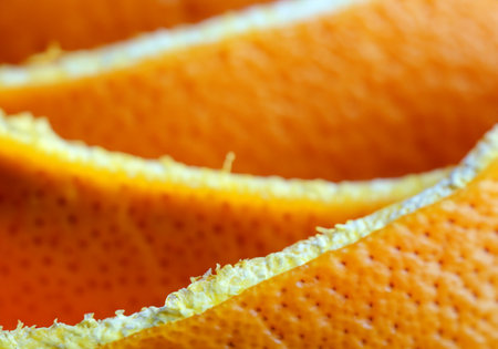Macro shot of vibrant orange citrus peels, highlighting their texture