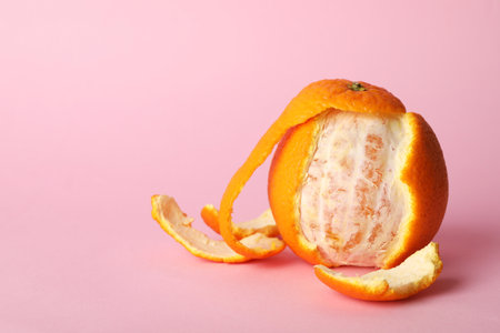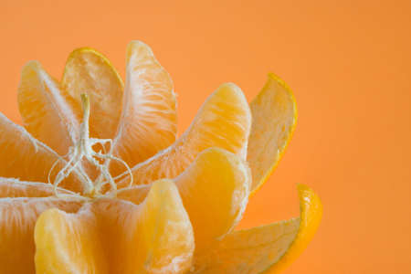 half peeled tangerine with copy space