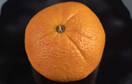 Sweet ripe orange on a black surface and black background