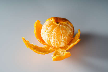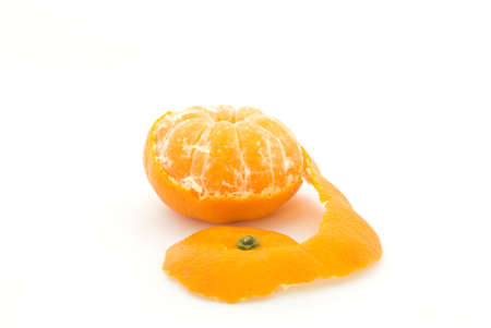 Tangerine with opened peel isolated on white background