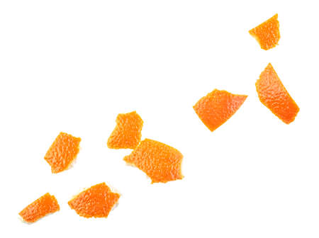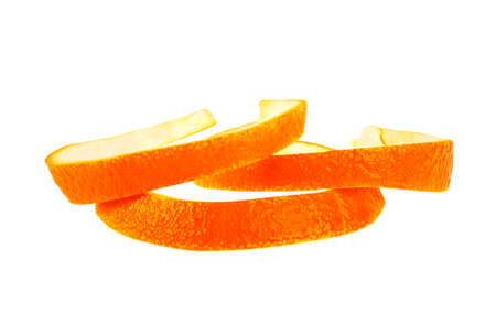 Orange peel on a white background, close-up.
