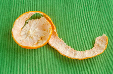 fresh orange peel on a green tablecloth background