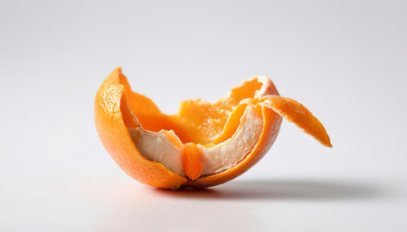 Bright orange peel isolated on a pristine white background, symbolizing vitamin C benefits and natural beauty health concepts