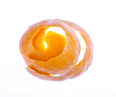 Peel of an orange on white background