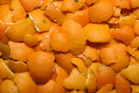 Bright orange peel from tangerines, a big pile.