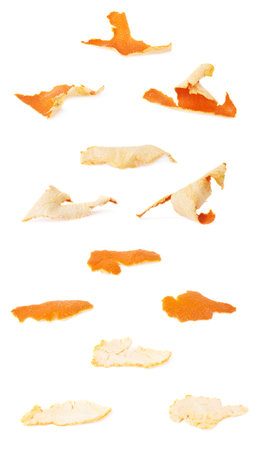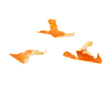 Orange peel on a white background, close-up.