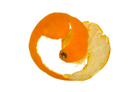Single orange peel on a white background. Vitamin C, beauty health skin concept.