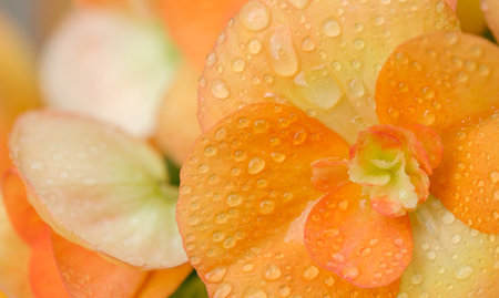 Colorful flower arrangement with water drops, raindrops, drops and well-kept flower beds