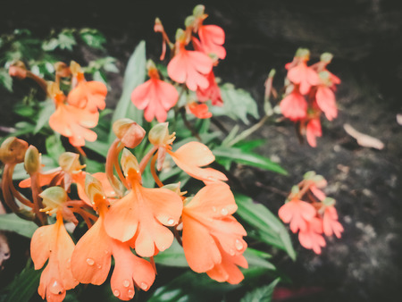 Chrysothemis Pulchella or Sunset Bells orange flower close up in the garden