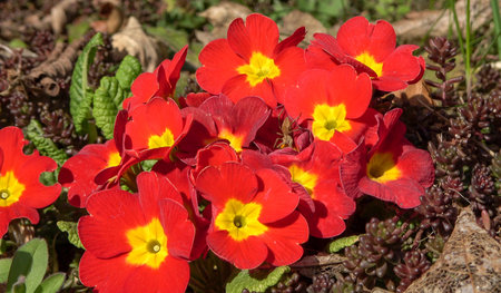 beautiful macro closeup of the flowers of a primrose, popular exotic plant specie from America