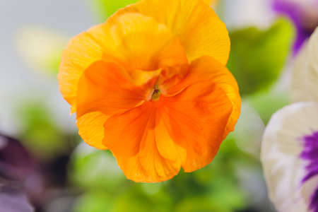 Ruggell, Liechtenstein, April 28, 2021 Macro of a colorful orange flower