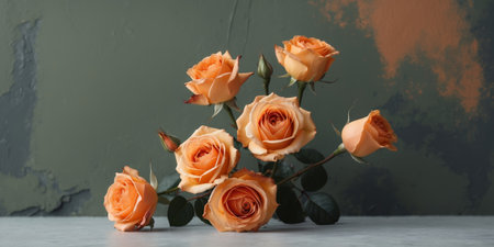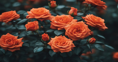 AI Generated. Orange roses on a dark textured background with muted colors featuring Copy Space for text insertion