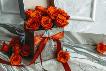 Orange roses in a floral arrangement for Valentine's Day or wedding.
