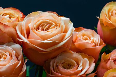 pink peach roses close up on a dark background