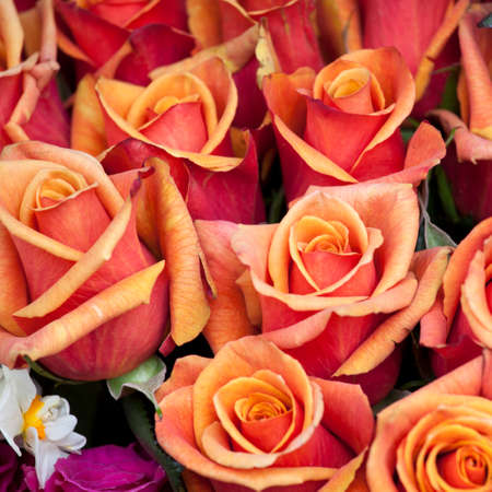 Bunch of the orange roses as background