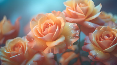 Beautiful orange roses with water drops on the petals. Soft focus.