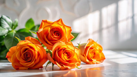 Elegant Orange Roses on White Architectural Background - Stock Photo